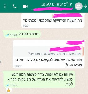 קמפיין זה דבר מלחיץ, וקמפיין בזק עוד יותר. מצרפת שיחה עם אימהות לילדי פונדקאות בקבוצת הווצאפ של "לעזור לעינב להשתקם", אני חושבת שאין מה להוסיף…